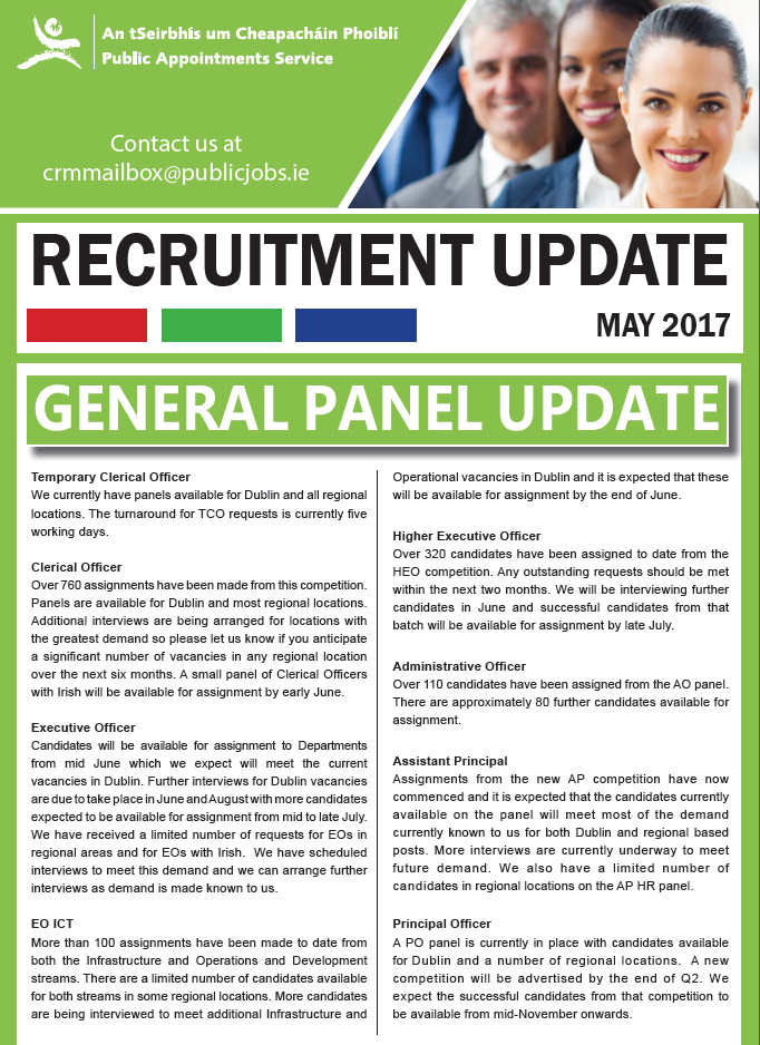 The Public Appointments Service offers a range of services to employers in the public sector. These services include a Recruitment Toolkit, which supports organisations doing their own recruitment, and a Client Portal that enables clients to manage elements of recruitment campaigns online. In addition, the Public Appointments Service offers a range of human resources, organisational development, recruitment, and selection solutions.